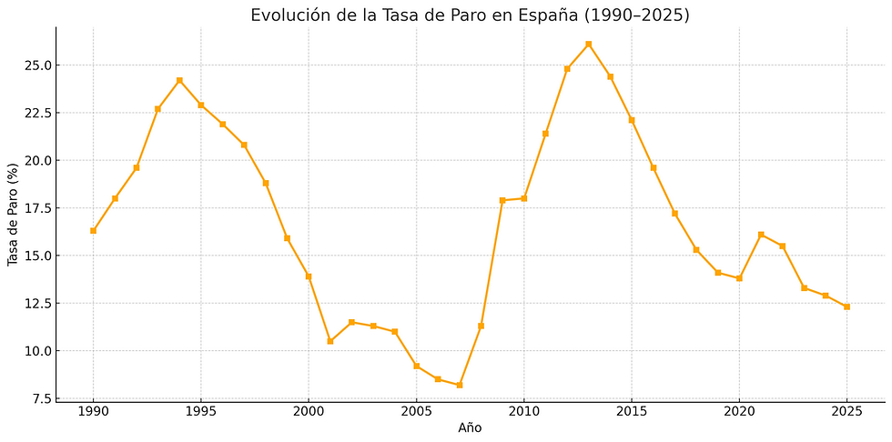 La reducción del desempleo ha sido significativa, con 236.100 personas menos en paro, lo que ha dejado el total en 2,55 millones, la cifra más baja desde 2008. El descenso del paro se ha concentrado principalmente en el sector servicios, con 178.500 desempleados menos, seguido por la construcción (-15.500) y la agricultura (-7.500). Sin embargo, el desempleo ha aumentado ligeramente en la industria, con 3.800 parados más. Los parados de larga duración han disminuido en 42.100, situándose en 953.300, mientras que el número de personas que buscan su primer empleo, principalmente jóvenes, ha aumentado en 3.700, hasta los 265.400. La tasa de paro juvenil, aunque aún elevada, ha caído dos puntos, hasta el 24,5%, el mejor dato desde 2008.